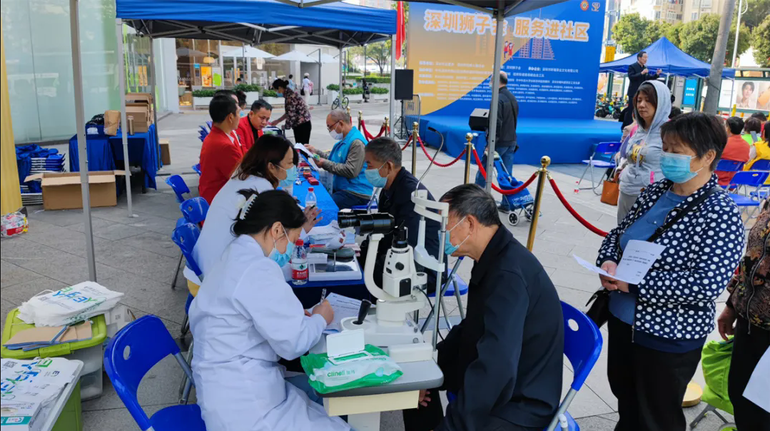 广大社区居民在狮友的指引下陆续完成了视力检测、眼底检查,并领取到适配的眼镜。