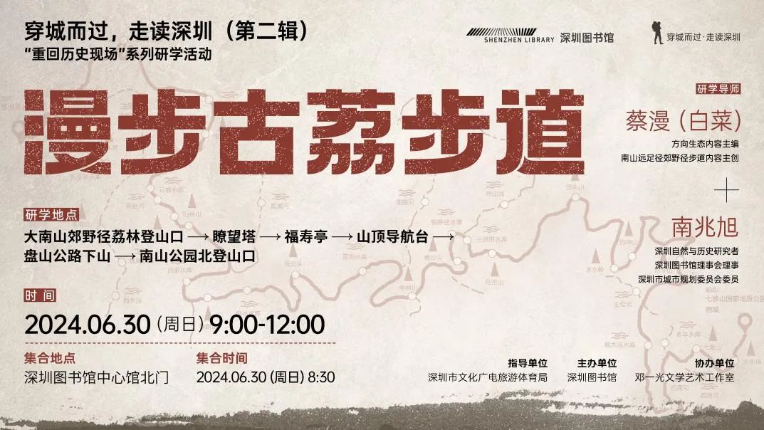 活动简介:岭南四时春,入夏荔枝红。在岭南荔枝成熟的最好时节,深圳图书馆举办“穿城而过,走读深圳”(第二辑)“重回历史现场”系列研学活动,邀请深圳自然与历史研究者南兆旭、方向生态内容主编蔡漫,带领市民读者一同漫步古荔步道,探究深圳种植荔枝的缘起,了解各式荔枝的品类,品读岭南荔枝文化。