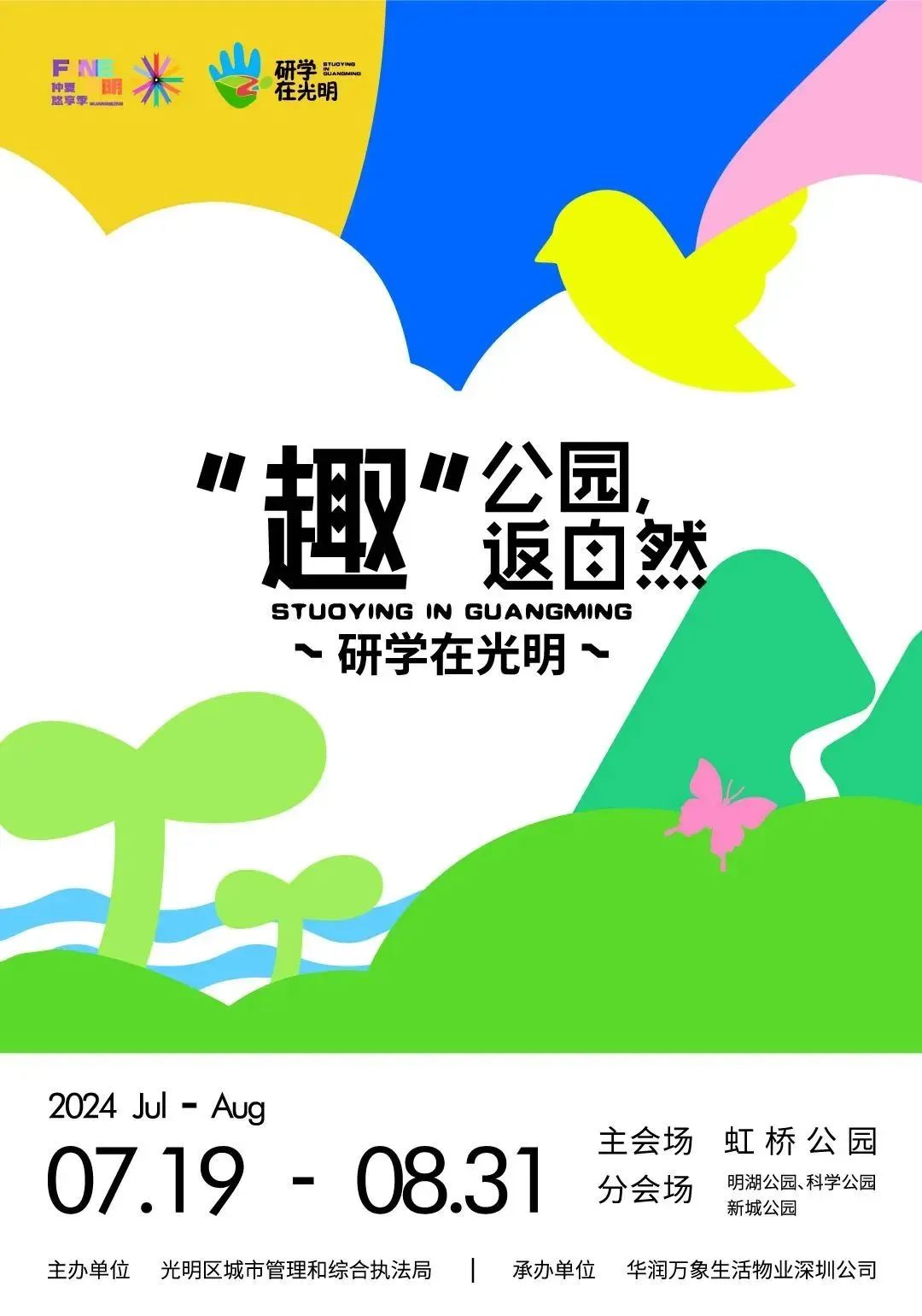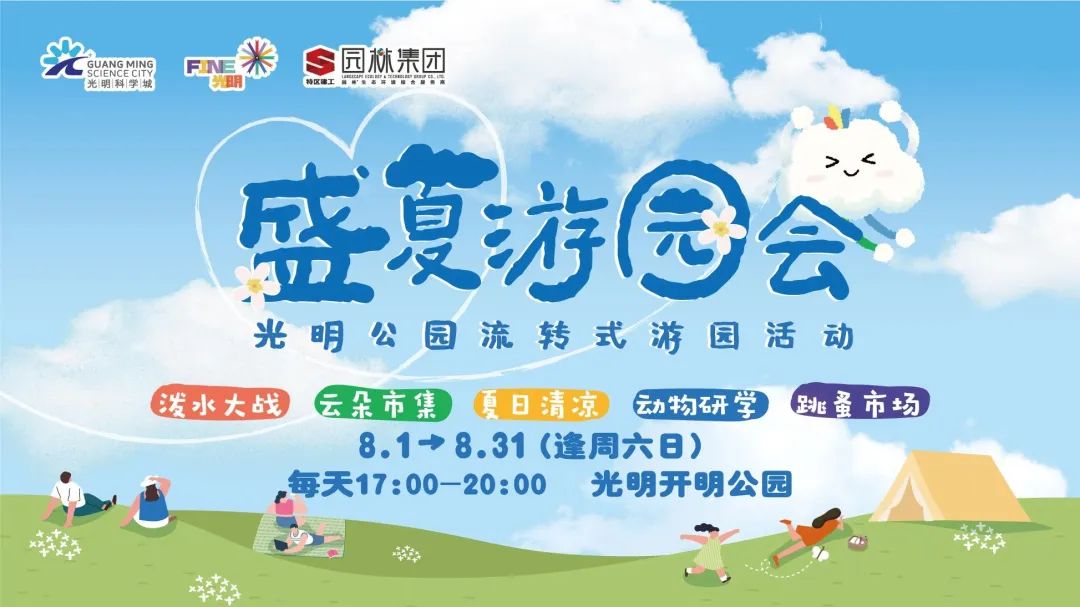 活动简介:8月1日-31日逢周末将在开明公园举办流转式游园活动,动物研学、仲夏游园、水上互动,丰富市民夏日,打造深圳首个公园集群流转式运营活动“用公园打开光明生活”