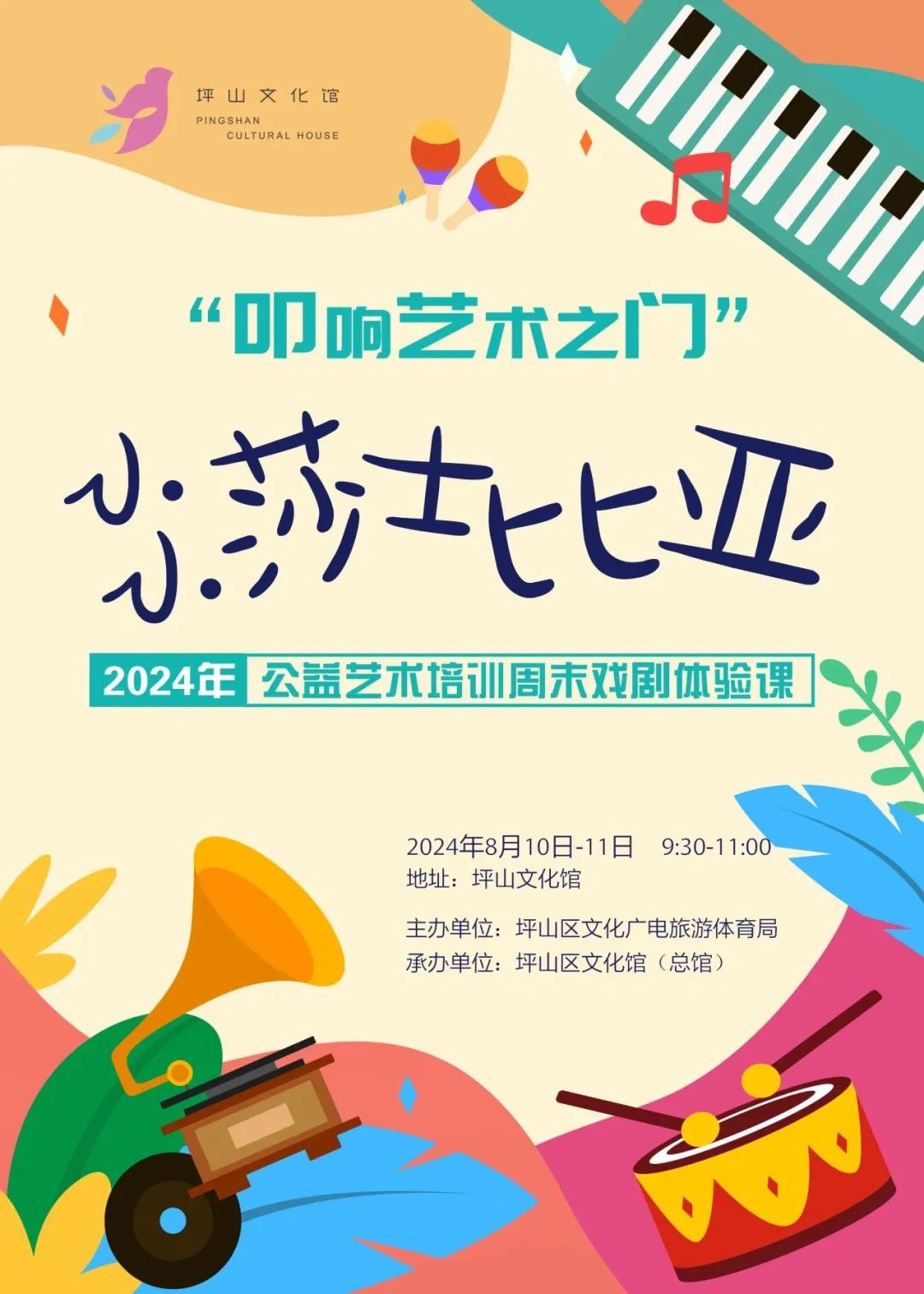 活动简介:作为“坪山·有戏”戏剧嘉年华的组成部分,坪山文化馆全民艺术普及周末课堂推出“小小莎士比亚”系列,融合文学、美术、音乐、舞蹈等多种艺术形式的瑰宝,以其独特的魅力,为孩子们打开一扇通往多彩世界的大门。