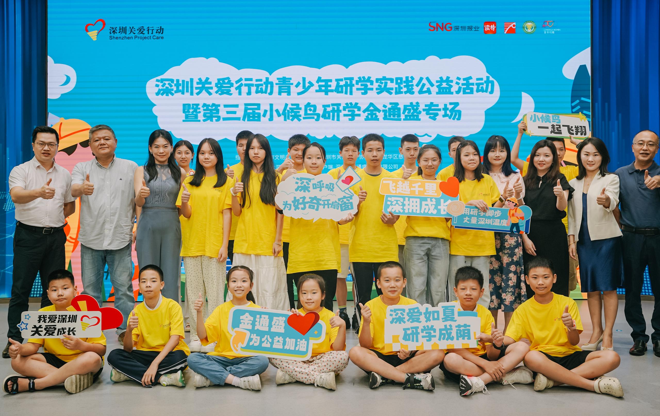 盛夏时节的鹏城,万物繁茂、生机勃发。7月22日上午,深圳新媒体大厦洋溢着孩子们的欢声笑语,“‘深’呼吸,为好奇开扇窗!”关爱新业态劳动者——小候鸟深圳研学金通盛专场活动在此温暖启航。20名来自全国各地的“小候鸟”齐聚一堂,将开启一场为期四天,融合科技奥秘、生态智慧与自然魅力的沉浸式研学旅程。