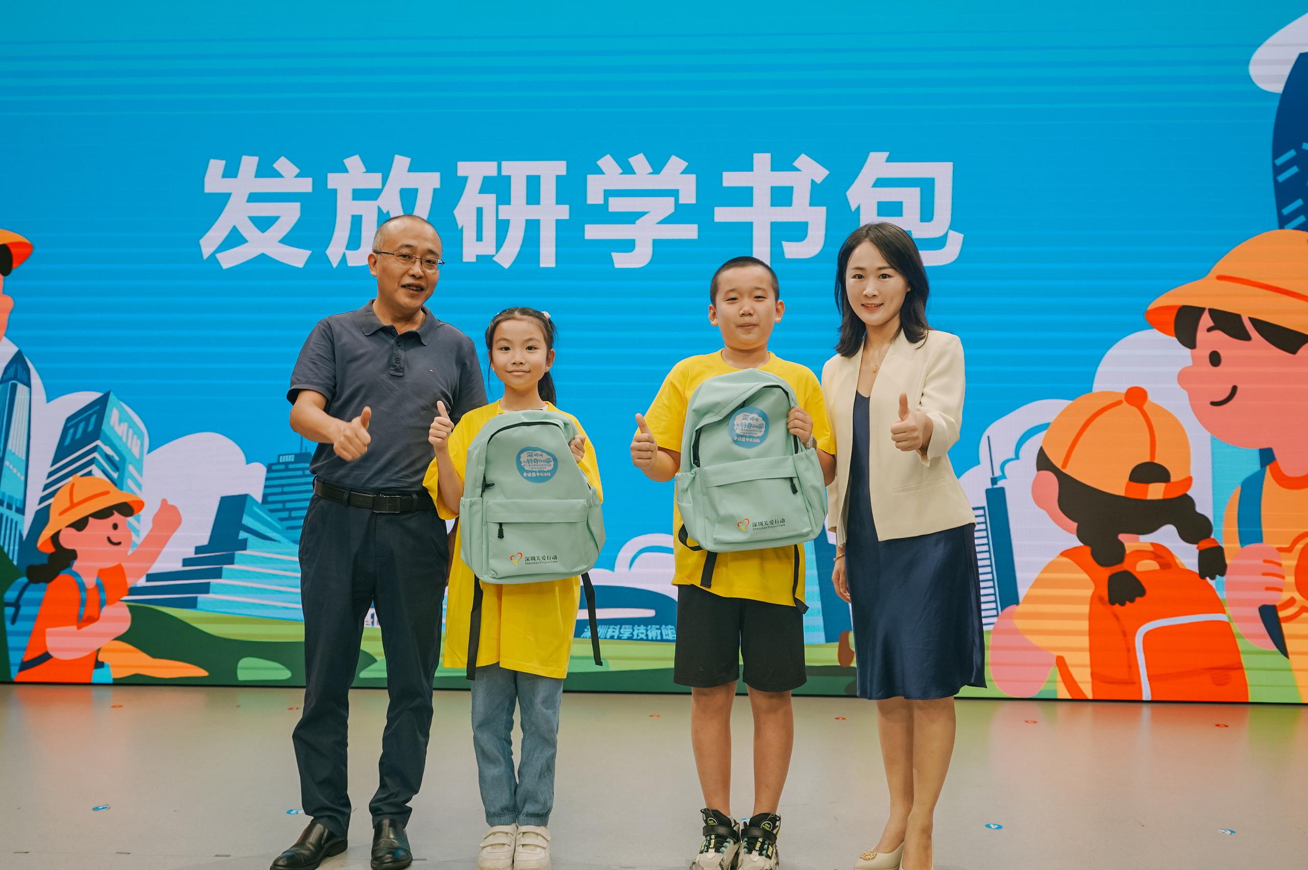 随后,深圳市关爱办执行副主任蔡艳云与读特客户端常务副总编辑刘琨亚共同为“小候鸟”代表发放研学书包。书包内配备了手册、笔记本、笔及学员证等实用物品,为孩子们未来四天的研学旅程提供贴心助力。
