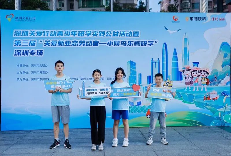 “小候鸟研学”活动始于2023年,2024年在深圳市文明办的指导下,发起成立了深圳关爱行动青少年研学实践公益平台。在政府、企业、公益机构的共同关怀下,每年暑假“小候鸟”们从全国各地飞来深圳,与亲人团聚,同时也用自己的脚步丈量父母奋斗的足迹,用童真的视角观察这座青春的城市,在互动体验中收获成长的自信。这一活动也实实在在帮助到新业态劳动者实现“团圆梦”,增强对孩子的假期安全守护和心理健康关怀。