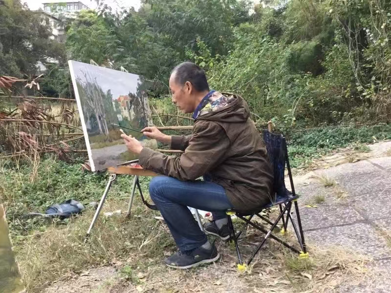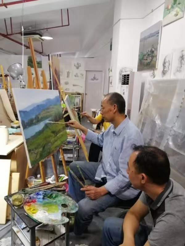 此事让蒋庆北第一次真切意识到大芬油画村里残疾画工群体所面临的普遍困境。他观察到这里竟聚集了七八十名残疾画工,他们大多没有接受过系统美术教育,绘画水平有限,靠临摹油画为生,生活颇为艰难,这一现实,像一根尖刺扎进蒋庆北的心里,也坚定了他必须做点什么的决心。